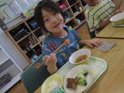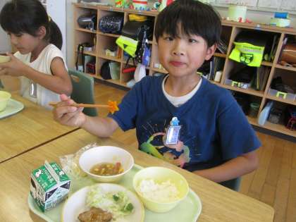今日の給食は七夕メニュー。 スープの中の星形人参に大喜びの子供たちでした。