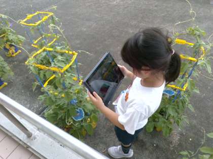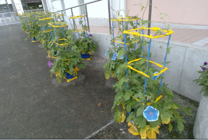 生活科で育てているあさがおの花が咲き始めました。クロムブックで写真を撮り、花の数の分だけカードに色を塗りました。きれいな花が咲いて、とても嬉しそうな子供たちでした。