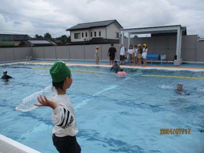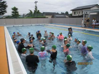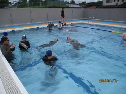 今日は着衣泳体験がありました。子供たちは、「思っていたより動きづらい」「実際に流れの速い川だったらと思うと怖い」と話しており、水の怖さを感じることができたようでした。もうすぐ夏休みなので、自分の命は自分で守るよう、考えて生活をしてほしいです。