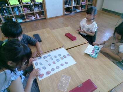 算数科で、「わかりやすくせいりしよう」の学習を行いました。教科書と同じカードを実際に集めたり並べたりしながら、どうすればわかりやすくなるかを考えました。