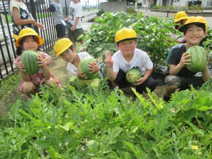グループで育てている野菜、最後の収穫は「スイカ」です。