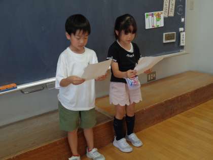 7月24日(水)1年生 お楽しみ会 公開日 2024/07/25 更新日 2024/07/25 1年生 第2回目のお楽しみ会を開きました。学級目標に少しでも近づけるように、みんなで協力して楽しみました。司会、はじめの言葉も上手にできました。