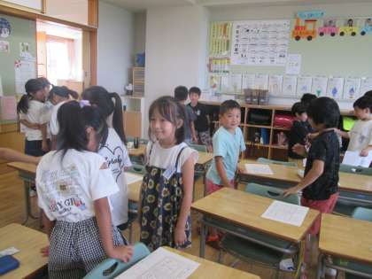 楽しかった夏休みの思い出をたくさん話してくれました。また、2学期にがんばりたいことを話す姿から、やる気いっぱいの2年生パワーを感じることができました。