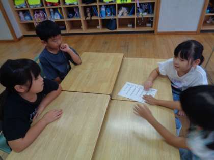 今日から2学期が始まりました。子供たちは先生方の話を真剣に聞いたり、夏休みの思い出についてさいころトーキングやドボンゲームを楽しんだりしました。どの子も2学期のいいスタートが切れたようです。