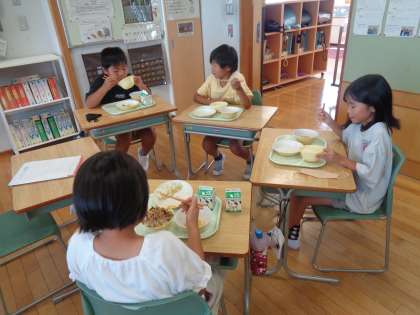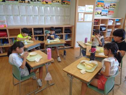 4年生教室は2学期初日、食べキリン達成できました!!!