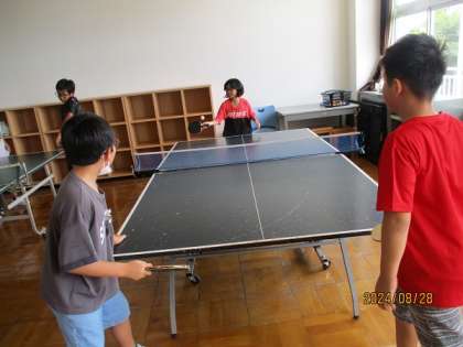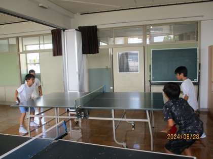 8月28日(水)5年生 卓球 公開日 2024/08/28 更新日 2024/08/28 5年生 2学期から多目的教室に卓球台が設置されました。卓球好きが多い5年生はさっそく今日のお昼休みに多目的教室へいき楽しんでいました。
