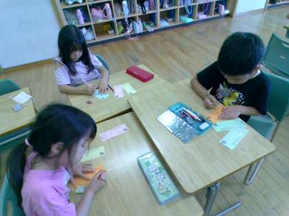 9月14日(土)に行われる事故ナシ作戦に向けて、安全運転を呼びかけるしおりを作成しました。「安全運転よろしくね」「よそ見しないで運転してね」「運転するなら飲まないで」など、思いを丁寧に書き、可愛く色を塗りました。しおりの完成までもう一息です。