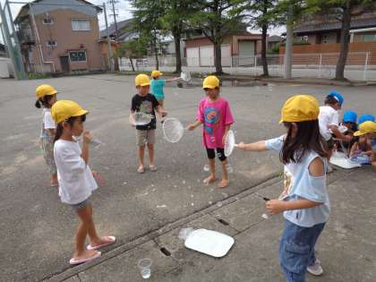 9月3日(火)1年生 水やシャボン玉で遊んだよ!(1)