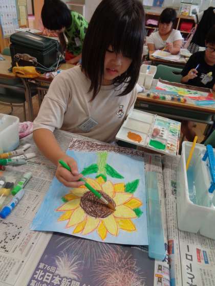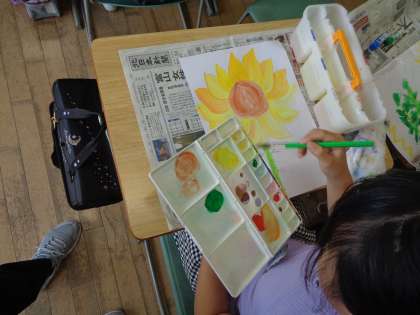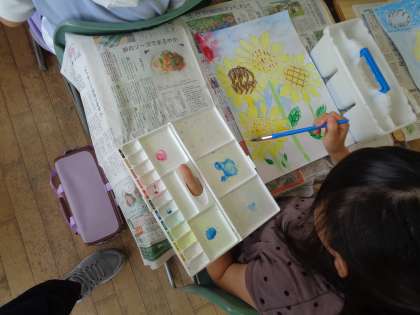 理科で育てているひまわりを描きました。