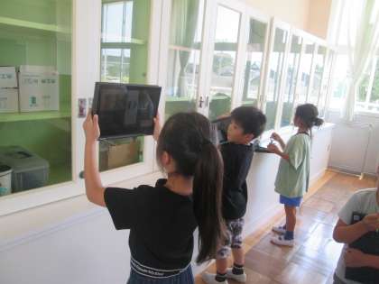 図画工作科では、隙間の好きな「すきまちゃん」を作り、写真を撮りました。隙間を見付けること、置き方を考えることを楽しんでいました。