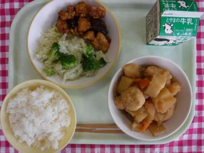 9月9日(月)今日の給食 公開日 2024/09/09 更新日 2024/09/09 本日の給食 今日の給食の献立は、ごはん、牛乳、鶏肉とレバーのあまからめ、そえ野菜、炊き合わせ でした。 鶏肉とレバーのあまからめは、しょうがの利いた甘めの味付けで、ご飯とよく合いました。炊き合わせは、ジャガイモがホクホク、ミニがんもどきはお出汁たっぷりで、とてもおいしかったです。