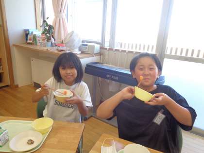 「にんじんは苦手だけど、これなら食べられる!!」「もったいないから最後に残しておきたい」と大喜びの4年生でした。