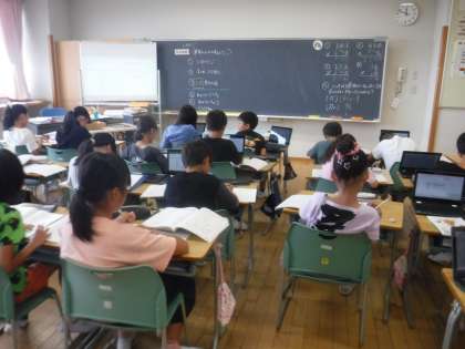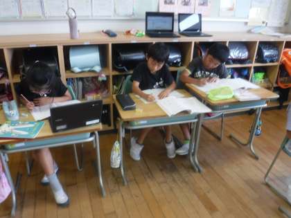 かけ算の筆算の学習です。3年生ともなれば、計算する数の位も大きくなり、3けたの数を含む計算に取り組んでいました。位をきちんとそろえながら正確に計算できるようがんばっていました。