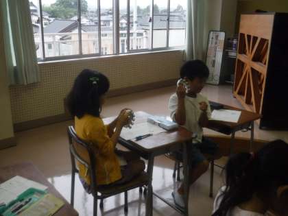10月3日(木)1年生 音楽科 公開日 2024/10/03 更新日 2024/10/03 1年生 すずを使った学習です。いろいろな鳴らし方を試し、音色を確かめていました。「サンタクロースの音がする」という発見をした子供がいました。