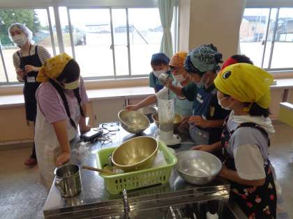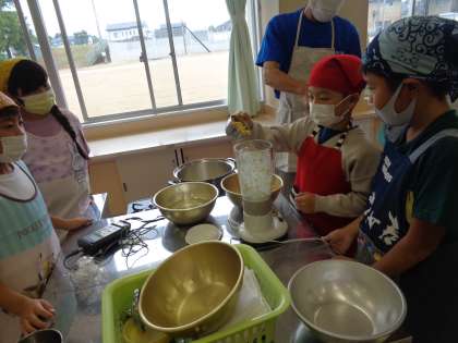 まずは、水切した大豆を水を加えながらミキサーにかけます。
