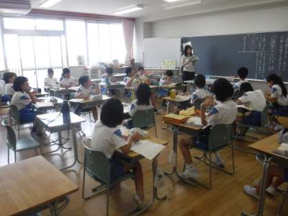 10月7日(月)4年生 国語科 公開日 2024/10/07 更新日 2024/10/07 4年生 「ごんぎつね」の最後の場面、登場人物の行動と気持ちをとらえていました。「ごん」を撃った後の「兵十」の行動を文章から探します。「かけよった」という行動を見付けました。 「『かけようる』ってどういうこと?」「かけよったということは、どのような気持ちだったのかな?」と、記述から読み取ったことをもとに登場人物の気持ちを考えていきました。