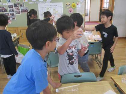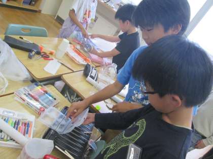 1回目は、準備してきた材料から音が出るオリジナル楽器をつくりました。「もっと〜したい」「○○が必要だな」と言いながら2回目の活動を楽しみにしています。