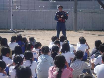 呉羽消防署の方に来ていただき、自衛消防訓練を行いました。休み時間に火災が発生したという想定での避難訓練を見ていただき、良かったところや今後のアドバイスを教えていただきました。「自分の命は自分で守る」を合い言葉に、安全に対する意識を高めていきます。