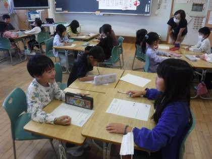 10月11日(金)1年生 道徳科 公開日 2024/10/11 更新日 2024/10/11 1年生 心が温かくなる「あったか言葉」の学習をしていました。グループの友達と話していると、「ありがとう」「大好き」「いいね!」など、あったか言葉がどんどん出てきました。