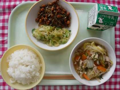 10月15日(火)今日の給食 公開日 2024/10/15 更新日 2024/10/15 本日の給食 今日の給食の献立は、ごはん、牛乳、小魚入りフライビーンズ、あわせ和え、白菜なべ でした。 小魚フライビーンズは、カリッと揚がったかえり煮干し(かたくちいわしの稚魚の煮干し)と大豆に甘辛い味付けがしみこんでおり、スナック菓子のようにポリポリと食べることができました。