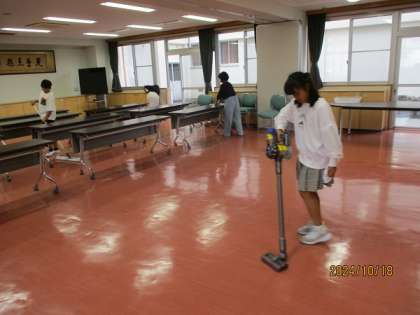 今日は学習発表会の前日準備があり、体育館や老田フェスで使用する教室や廊下、トイレ等を掃除しました。