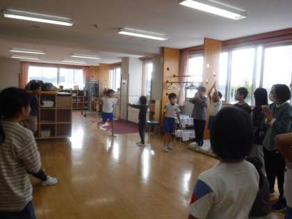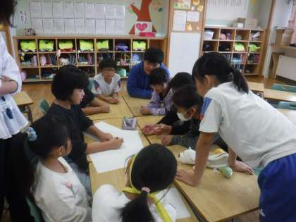 今日の朝活動は、なかよし班活動の時間でした。今回は、5年生が活動の企画をしてくれました。たけのこニョッキや、絵しりとり等、みんなで楽しめるゲームを考えてくれており、仲良く活動できました。