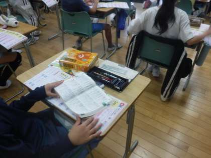 10月23日(水)4年生 国語科 公開日 2024/10/23 更新日 2024/10/23 4年生 新出漢字の練習中でした。スキルで練習をした後は、熟語を国語辞典で調べます。語彙が増えるだけでなく、意味を一緒に知ることで、新出漢字を早く覚えることができます。