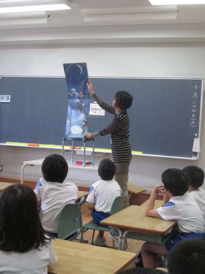10月24日(木) 2年生 読み聞かせ 公開日 2024/10/24 更新日 2024/10/24 2年生 今日も楽しいお話をしてくださいました。 大きな絵本も用意してくださり、お話の世界に浸ることができました。