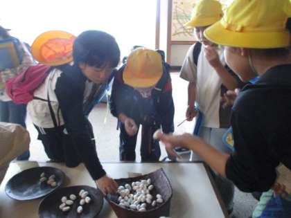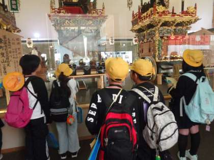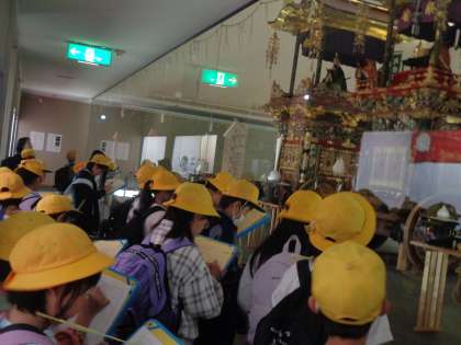 八尾曳山展示館では、曳山祭りや八尾の養蚕の歴史について教えていただきました。