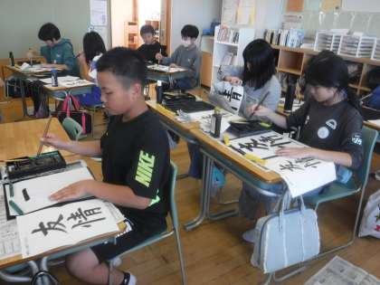 11月6日(水)6年生 書写 公開日 2024/11/06 更新日 2024/11/06 6年生 点画のつながりや、はらいを意識しながら「友情」と書く練習です。お手本で字形を確認したり、書き上げた作品を眺めて全体のバランスを確かめたりしながら、繰り返し練習していました。