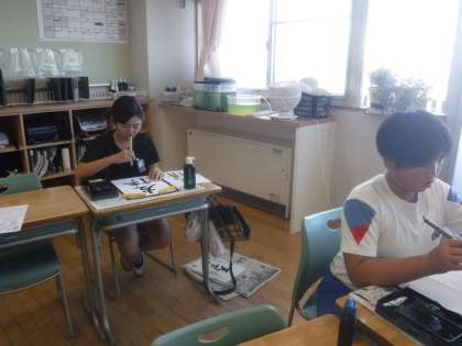 11月6日(水)6年生 書写 公開日 2024/11/06 更新日 2024/11/06 6年生 点画のつながりや、はらいを意識しながら「友情」と書く練習です。お手本で字形を確認したり、書き上げた作品を眺めて全体のバランスを確かめたりしながら、繰り返し練習していました。