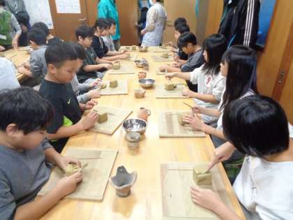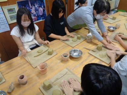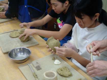 土器作りの様子です。思い思いの形になるように、集中して作っていました。