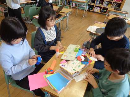 自まんしたい会に向けて作戦を練ったり、折り紙の技を伝え合ったりして思い思いの休み時間を過ごしています。教室掲示も冬に向けた飾りが増えています。