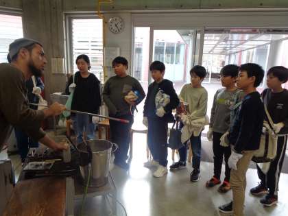 道具の扱いについて説明を受けています。