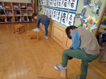 のこぎりの扱いにも慣れ、手早く、安全に気を付けて切ることができています。完成間近ですね!