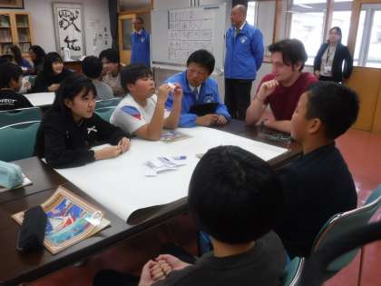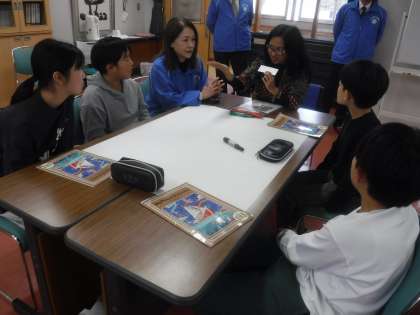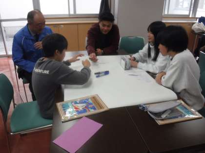 子供たちは6つの班に分かれ、それぞれ留学生さんと簡単な英会話を交えながら交流していました。これまで学習してきたことを生かすことができ、嬉しそうな笑顔がたくさん見られました。