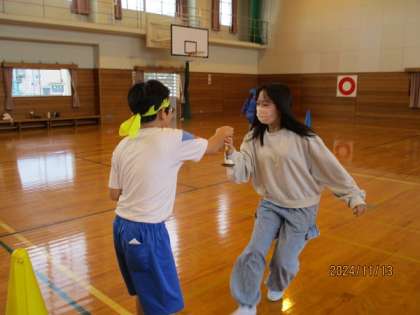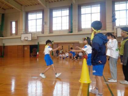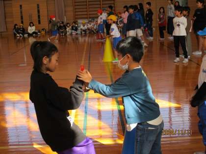 今週は11日(月)、13日(水)、15日(金)とピンポン球リレー大会がありました。お玉にピンポン球を入れ、それをバトン代わりにつないで走りました。