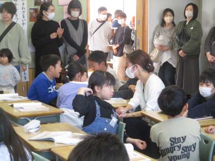 家族のために自分が出来ることを考えました。子供たちは、「自分にできることをしたい」「家族が疲れているときは、自分が家事をしたい」等と考えました。本日は、ご参観ありがとうございました。