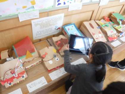 自分で作った「すきまちゃん」と一緒に、好きな「隙間」を見付けて写真を撮影する活動をしていました。お気に入りの隙間探しに夢中な1年生でした。