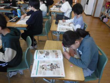 11月19日(火)4年生 理科 公開日 2024/11/19 更新日 2024/11/19 4年生 理科室で実験をすることが多くなった4年生。改めて、教科書の資料をもとに、理科室の安全な使い方について学習をしていました。