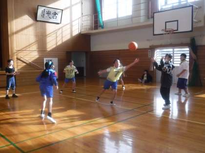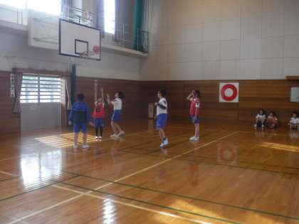 11月20日(水)5、6年生 体育科 公開日 2024/11/20 更新日 2024/11/20 6年生 バスケットボールの学習です。回を重ねると簡単な形式の試合ができるようになりました。身に付けた技能を生かしながら、相手の攻撃をかわしてパスをつないでいきます。