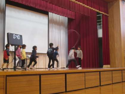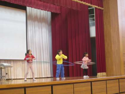 2年生からは、パート1に8の字跳び、フラフープ、パート2にピアノ発表、けん玉、単縄跳びに出場しました。