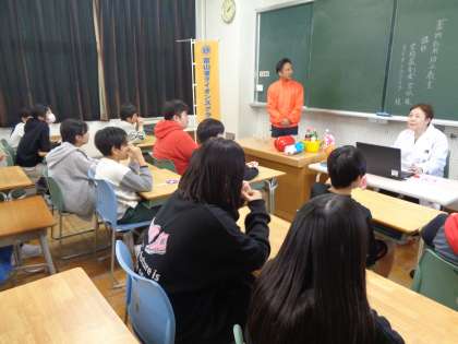 富山薬剤師協会と富山東ライオンズクラブから講師の方をお招きして、薬物乱用防止教室を行いました。