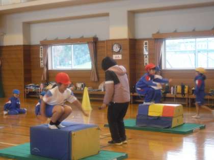 12月5日(木)1年生 体育科 公開日 2024/12/05 更新日 2024/12/05 1年生 1年生は、クッション性のある台に跳び乗ったり、両手両足で床を移動したりする運動に取り組んでいました。こうした動きを身に付けることで、上手に跳び箱を跳び越せるようになります。