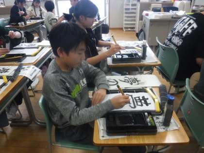 12月9日(月)6年生 書写 公開日 2024/12/09 更新日 2024/12/09 6年生 書初の練習です。6年生は「夢の実現」と書きます。一字一字の形だけでなく、全体のバランスもよく考えて書きます。この言葉の意味も大切にしながら、心を込めて書いてほしいと思います。