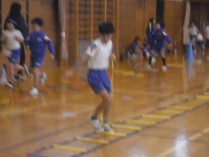 12月9日(月)3、4年生 体育科 公開日 2024/12/09 更新日 2024/12/09 3年生 ハードル走に取り組んでいました。フラフープ、ラダー、ミニハードルと、いろいろなコースが用意されており、自分で選んで挑戦していました。