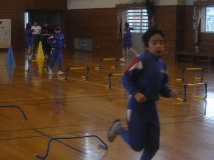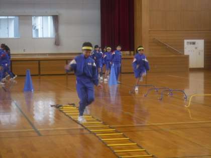 12月9日(月)3、4年生 体育科 公開日 2024/12/09 更新日 2024/12/09 4年生 ラダーでリズム良く走る練習をすることで、ミニハードルを上手に跳び越えながら走れるようになってきました。