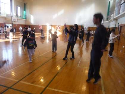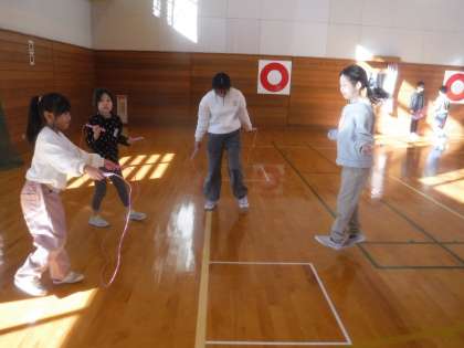 今日の生き生きタイムは、体力つくり活動です。色団ごとに体育館とワークスペースに分かれて縄跳びに取り組みます。下の学年の子供たちは、先輩たちにお手本を見せてもらったり、コツを教えてもらったりするチャンスです。みんな、一生懸命にがんばっていました。