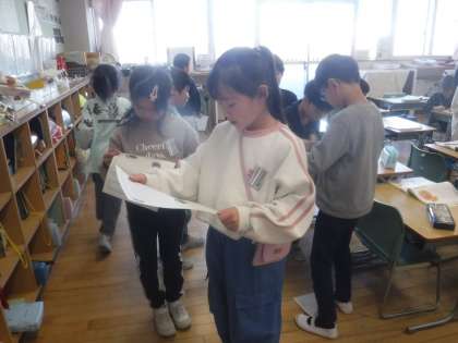12月10日(火)2年生 道徳科 公開日 2024/12/10 更新日 2024/12/10 2年生 「とくべつな たからもの」という教材文を読み、やさしい人とはどのような人か考えました。授業の最後には、ワークシートを見せながら考えを伝え合いました。伝え合った後、「ありがとうございました」と自然に言える子供が多く、その姿に2年生のやさしさを感じました。