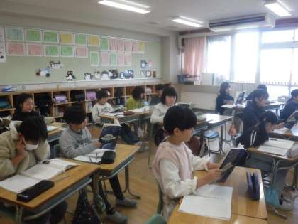 アンパンマンで有名なやなせたかし氏の伝記を教材文として学習しています。まずは、一人一人、しっかり教材文を読みます。やなせたかしさんがどのような人生を歩んだのか、じっくりと味わってほしいです。